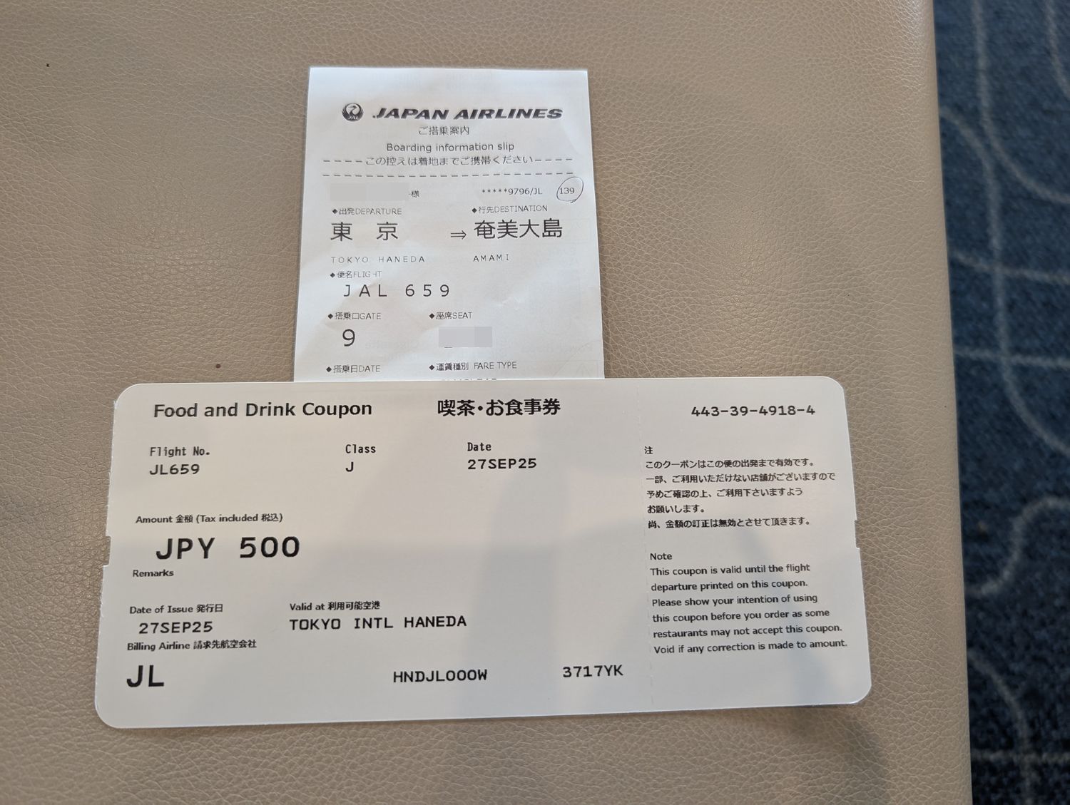 JAL659便 東京/羽田(HND)(11:10)→奄美(ASJ)(13:20) |