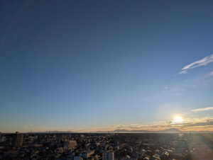 今朝の北関東は晴れ。雲も少なく朝日がとっても眩しい空です。