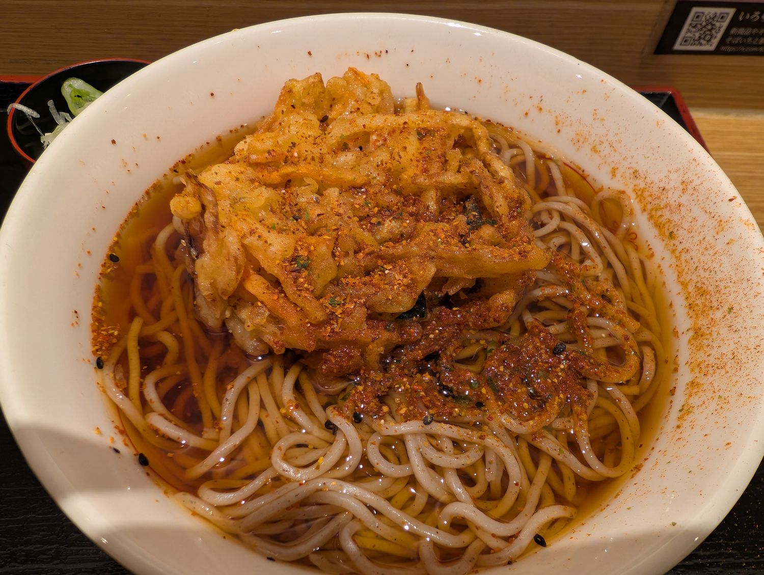 家を遅めに出たので、途中の上野駅で腹ごしらえ。せっかくの大晦日なので、年越しそばがてら浅草口にある「いろり庵きらく」で天ぷらそばをいただきました。 |