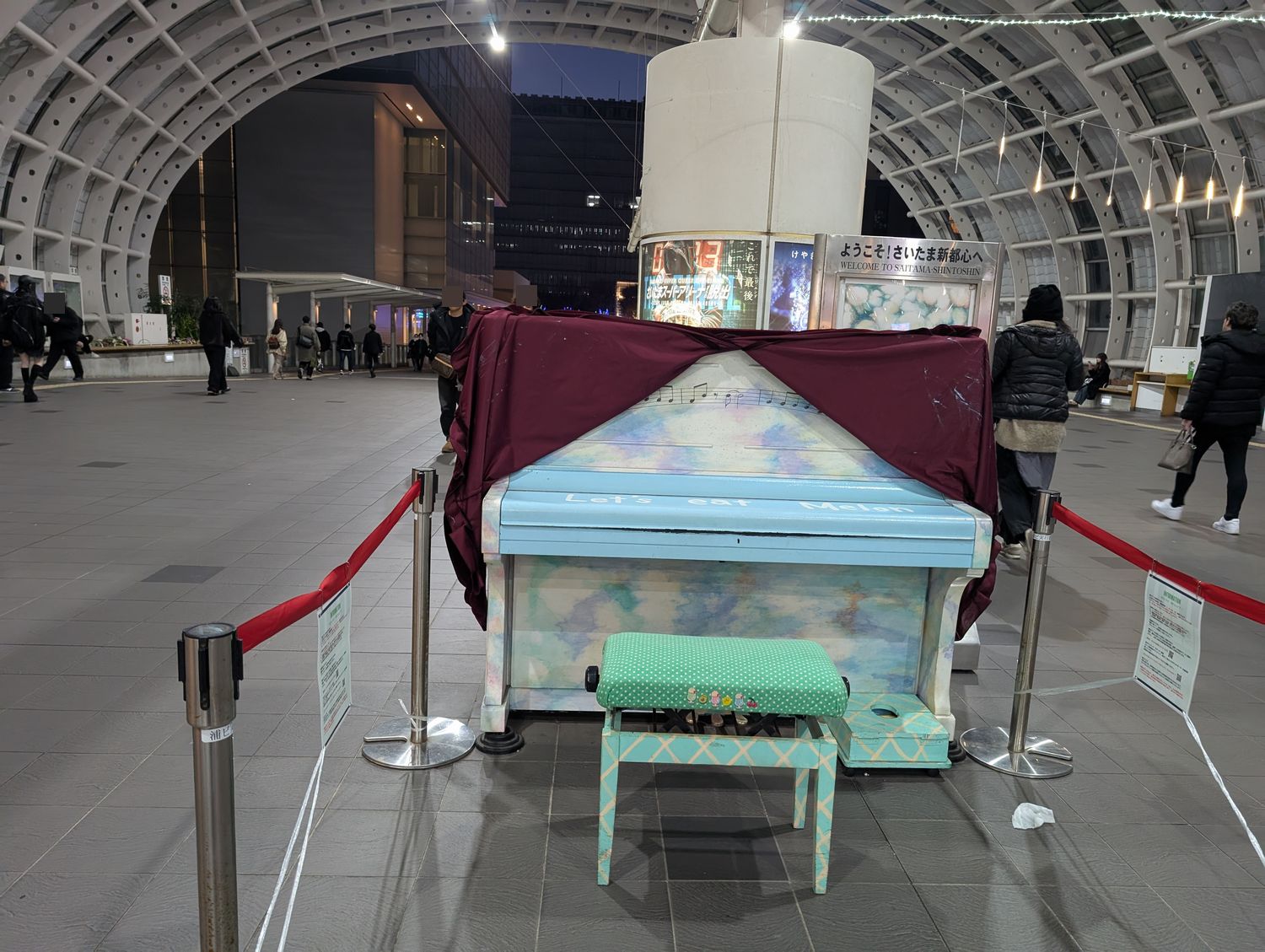 ここの1階にある飲食店街のはずれに、ストリートピアノが設置されています。着いたときにはちょうど先客が素晴らしい演奏をしているところでした。 |