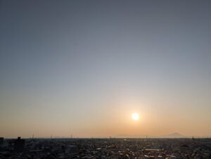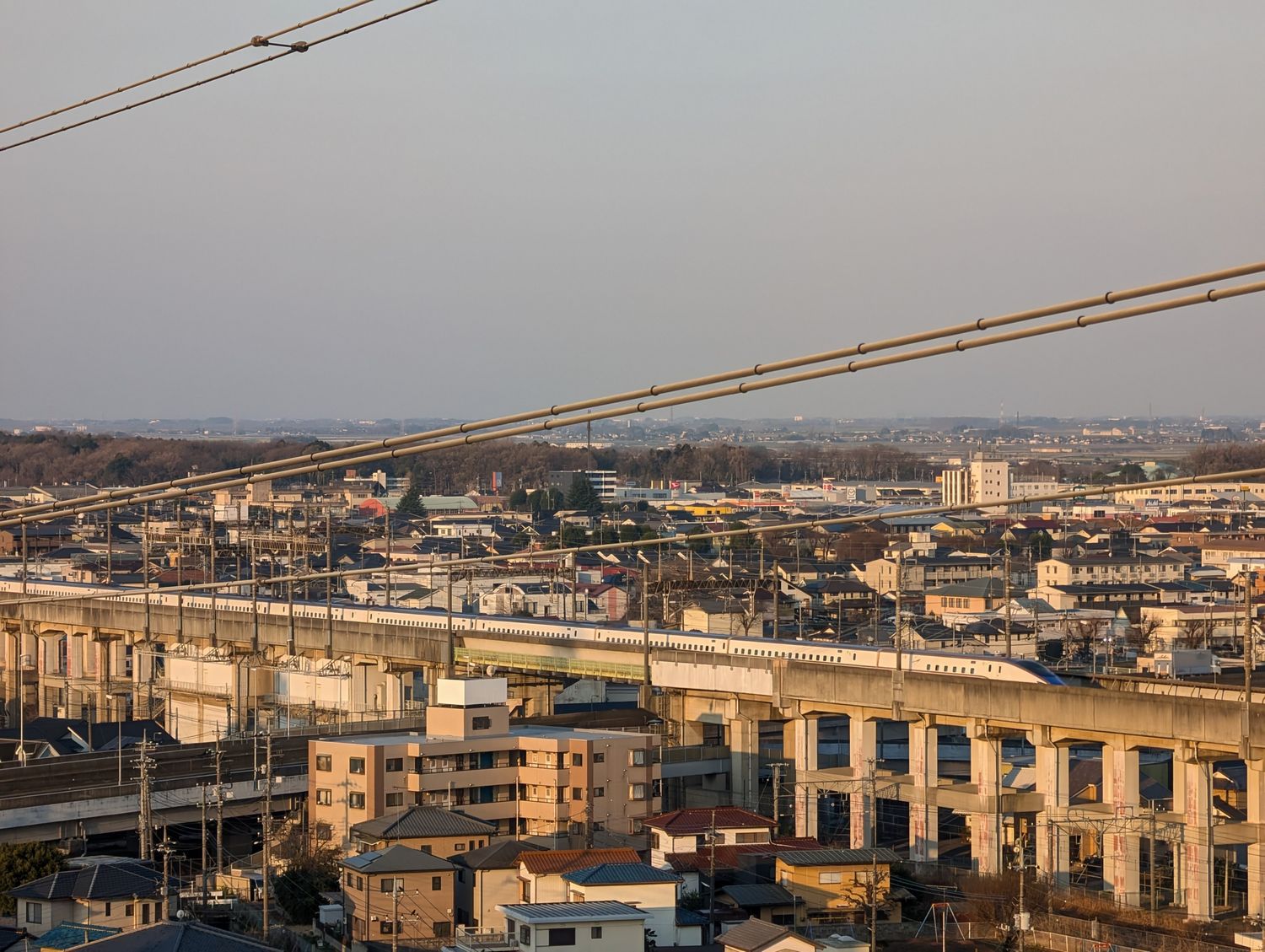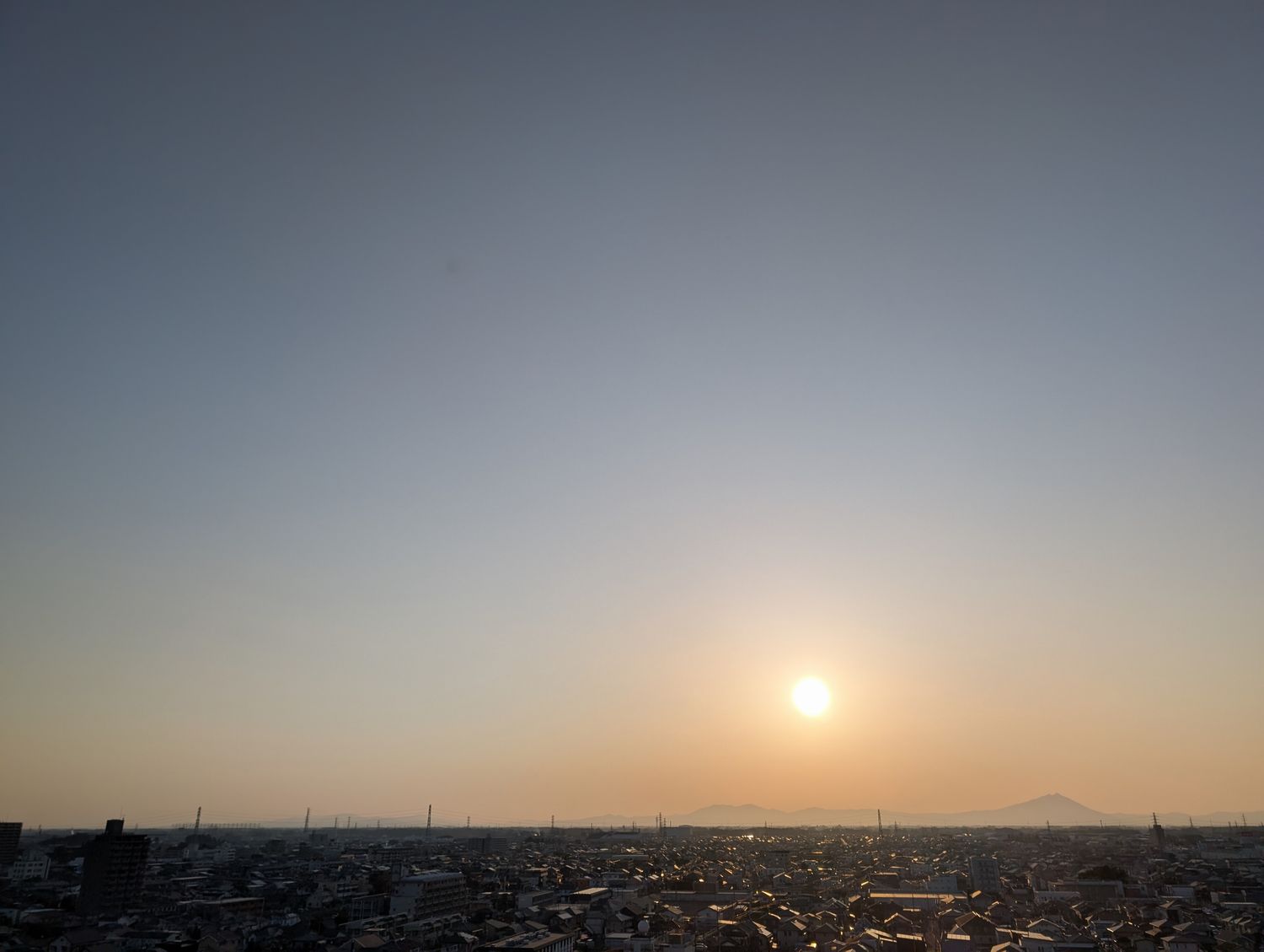 今朝の北関東は晴れ。春らしく白っぽく空が霞んでいますね。 |
