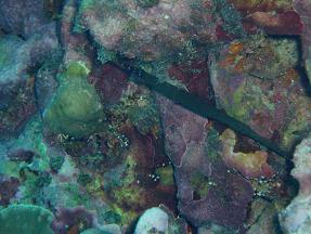 (トゲウオ目ヘラヤガラ科 Aulostomus chinensis) (2006/05/21 八丈島(底土)にて) |
