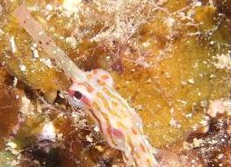 (トゲウオ目ヨウジウオ科 Corythoichthys haematopterus) (2009/01/01 久米島,儀間インリーフにて) |