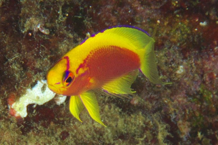 冒頭の子はオスになりかけの子ですが、メス(幼魚)はこんな感じ。オスになりきると背びれや尾びれが真っ赤に染まっていくようです。立派なオスの写真を撮りに、また小笠原へお出かけしなきゃですねー。