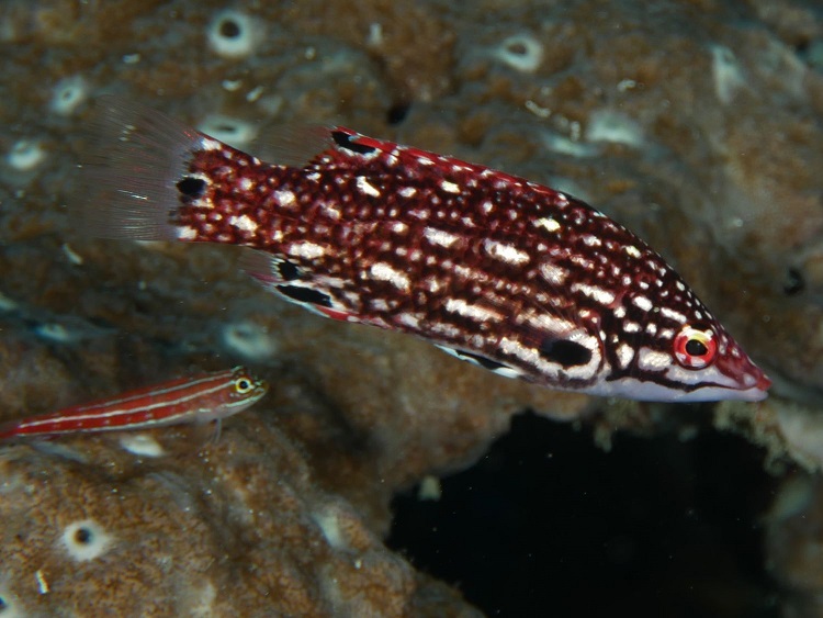 2018年の潜り初めは沖縄の瀬底島。そこのやや深場(-20mくらい。)の岩陰をちょろちょろしてました。 ベラさんにしてはさほど動かなくてせいぜい岩陰の暗がりに逃げる程度ですが、撮られ慣れていないのでまともな写真はこの1枚だけ。ビミョーにピントが壁に行っちゃってるのでまた撮り直さないと。