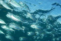 沖縄の冬の風物詩が、このグルクマさんの大群。数十〜数百匹の大群がみんな大口を開けて水面近くを泳ぎ回る光景は一見の価値があります。単に湧昇流で湧き上がってきたプランクトンを食べに来てるだけなんだけど、大群かつ高速で水面を走りまわるので海慣れしてない観光客のシュノーケラー客はちょっとコワイかもね。ワタシもかなり興奮したし。 サバの仲間なので、そこそこサイズもあるし味も良いらしいです。砂辺で見かけた時に現地ガイドさんに「グルクマの大群がいたよー」って言ったら、「美味しそう♪」って返事が返ってきたし。