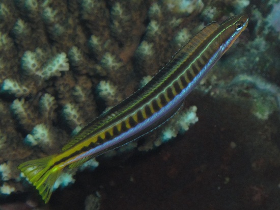 (スズキ目イソギンポ科 Plagiotremus tapeinosoma) (2011/01/01 久米島,トリノクチにて) |