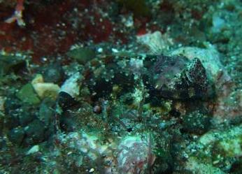この奥にいたアカハチハゼを撮っていたら, ガイドが「手元にいるよ〜」と教えてくれた。 あまりに見事な擬態に,すっかりだまされてしまった〜! 港湾近くの浅場にいるから「コウワン」テグリなのかと思ったら,沖縄の浦添市「小湾」という地名が 名前の由来なんだとか。ちなみに「テグリ」というのは,泳ぐ姿が「てくてく」歩くように見える からなんだって。でも,「てくてく」よりはだいぶ素早く動くような気がするけどね。 |