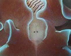 ちなみに,右は同じ個体の正面写真。真ん中の2つの点が,退化した眼なんだとか。