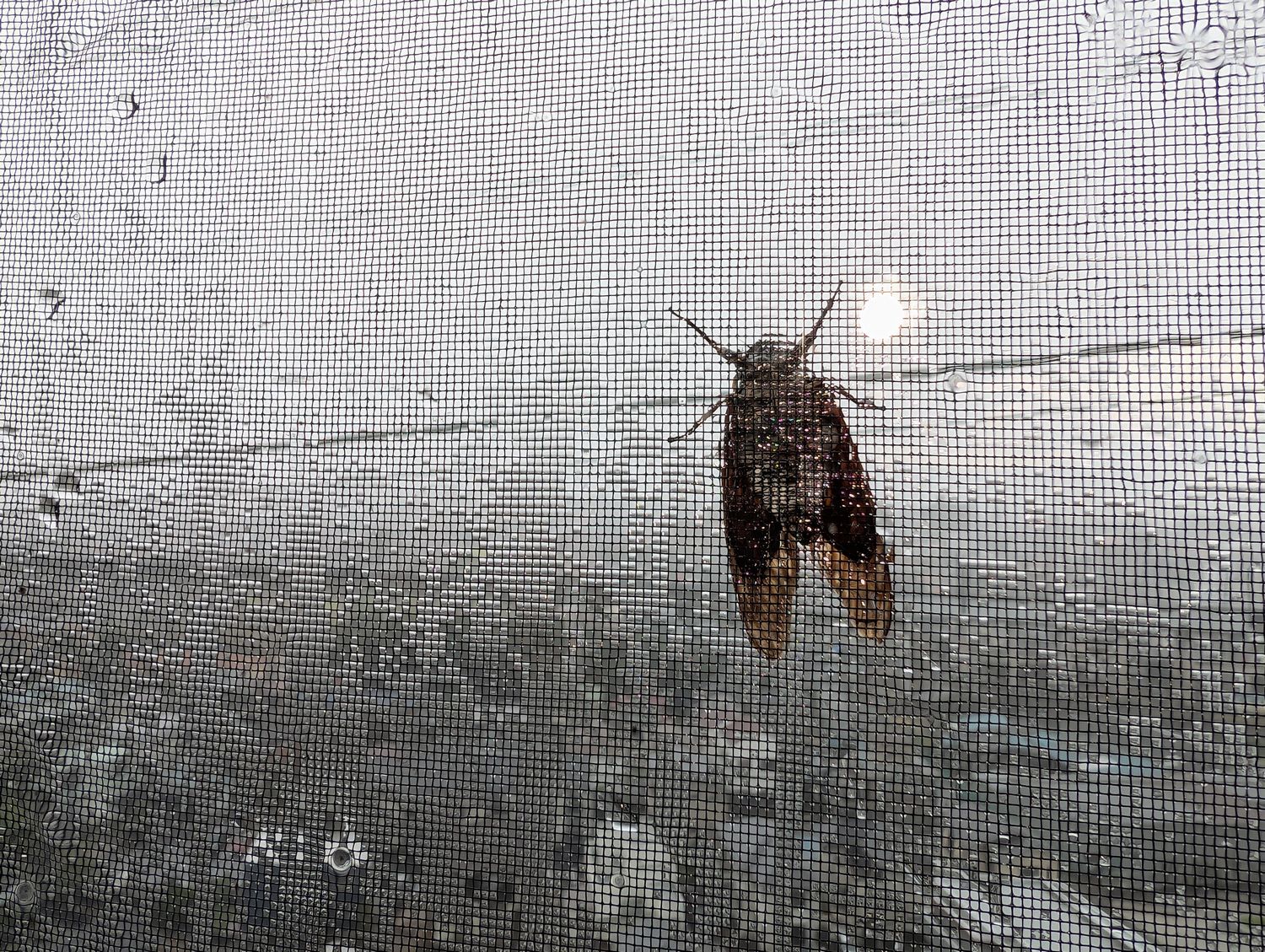えっ?と思って窓を見ると、蝉さんが雨宿りしてました。