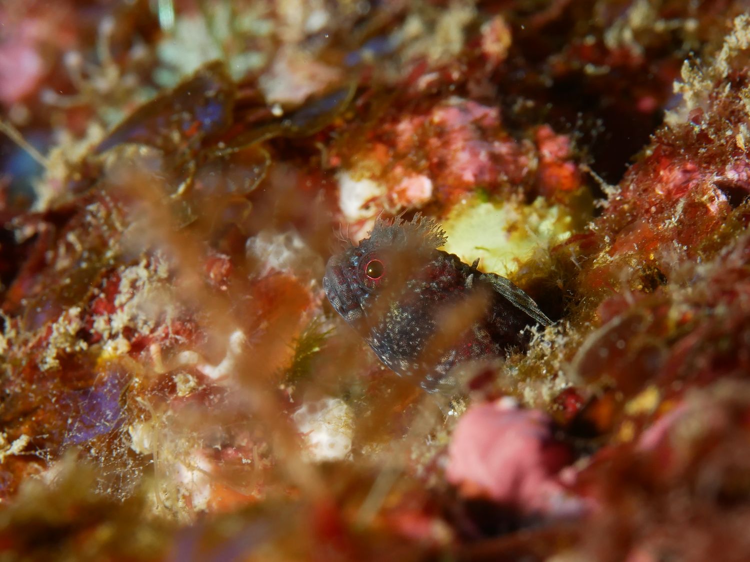 他のところではレアなチシオコケギンポさんがハバをきかせているベンテンで、肩身が狭そうなトウシマコケギンポさん(Neoclinus toshimaensis)を見かけました。
