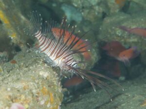 黒潮に流されてきちゃったっぽい、ハナミノカサゴさん(Pterois volitans)の若魚。