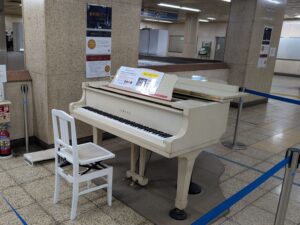 ここにあるのが、白い駅ピアノ。外ではなく地下街にあるためか、状態がとっても良いピアノでした。