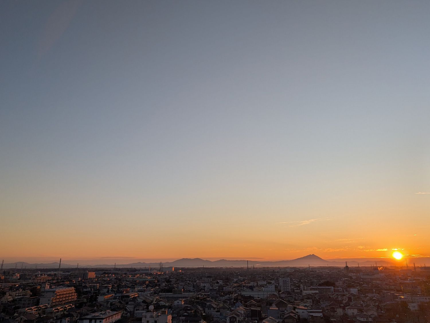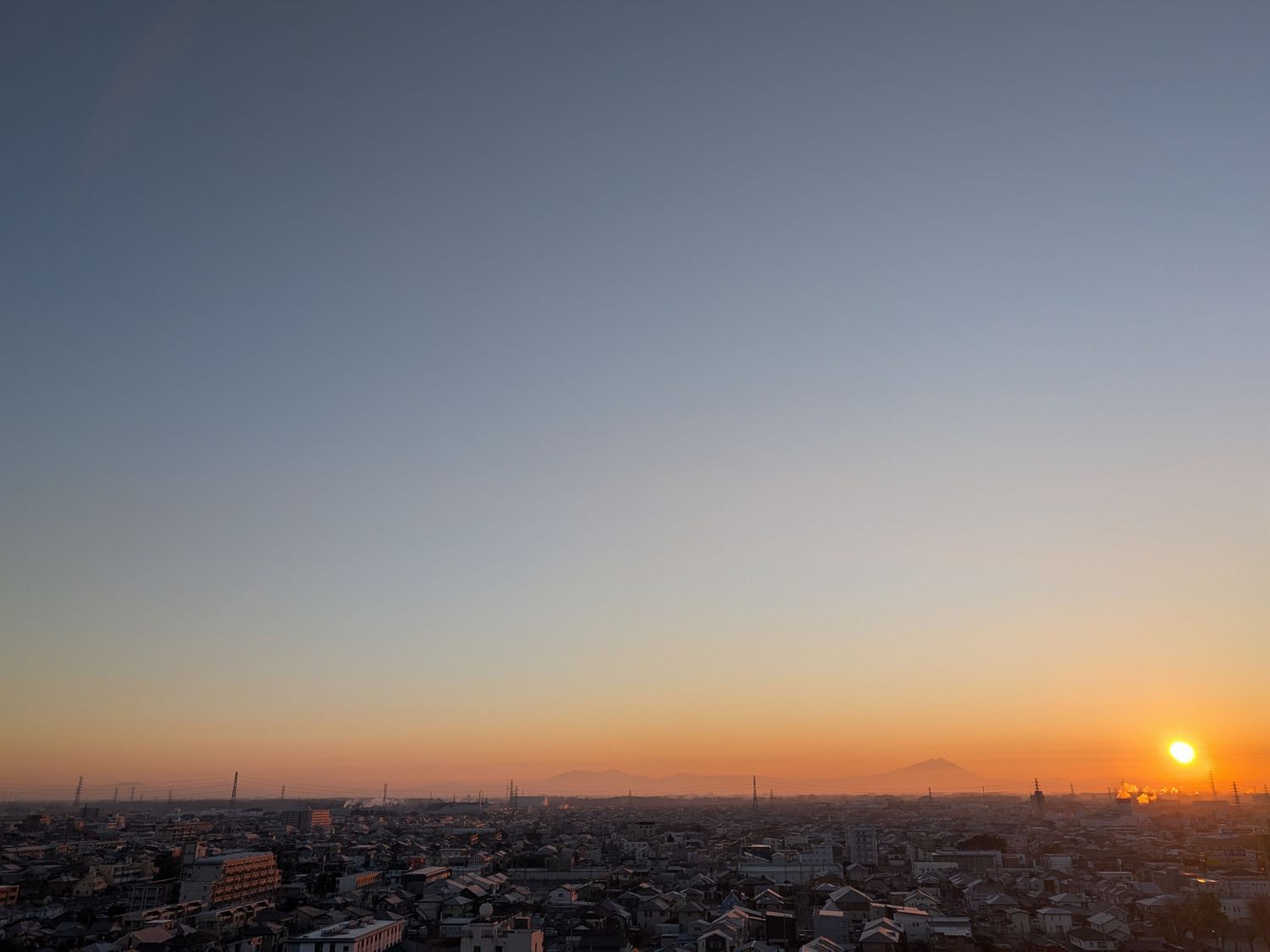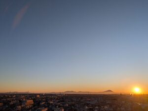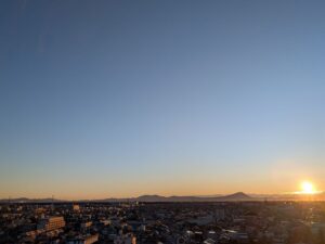 今が1年で最も日の出が遅い時期。お家を出る時間にようやく↑のような朝日が昇ってくる感じです。当然、「いつもの新幹線」の時間は払暁といったところでまったく写真は撮れません。
