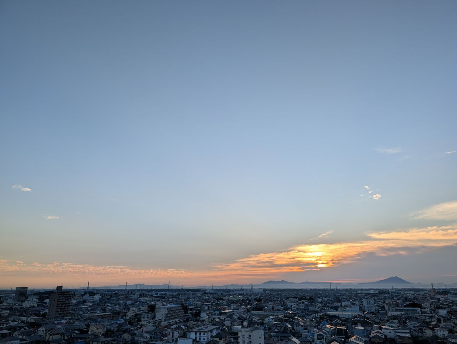 今朝の北関東は晴れ。こんなにキレイな青空と朝日のコラボは久しぶりです。 |